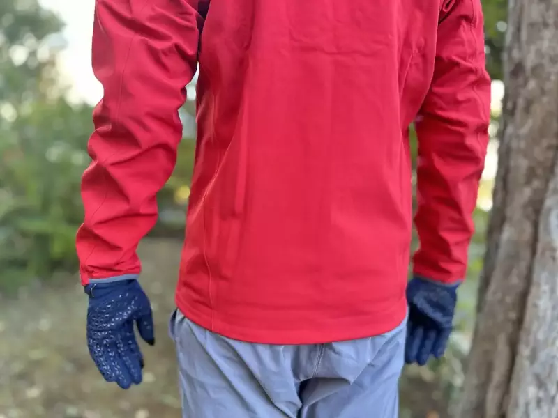 袖口は伸縮性のある素材が手首側に備えられ、手の甲部分からの風の侵入を防いだデザインを採用しています。裾からの冷気の侵入を防ぐためのドローコードは左右のコードを引っ張ることでフィット調整を容易に行えます。