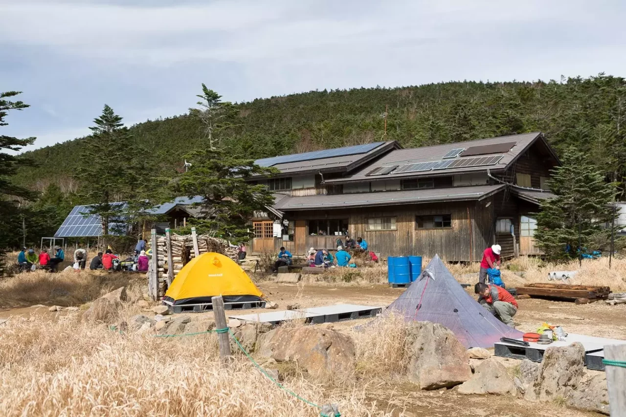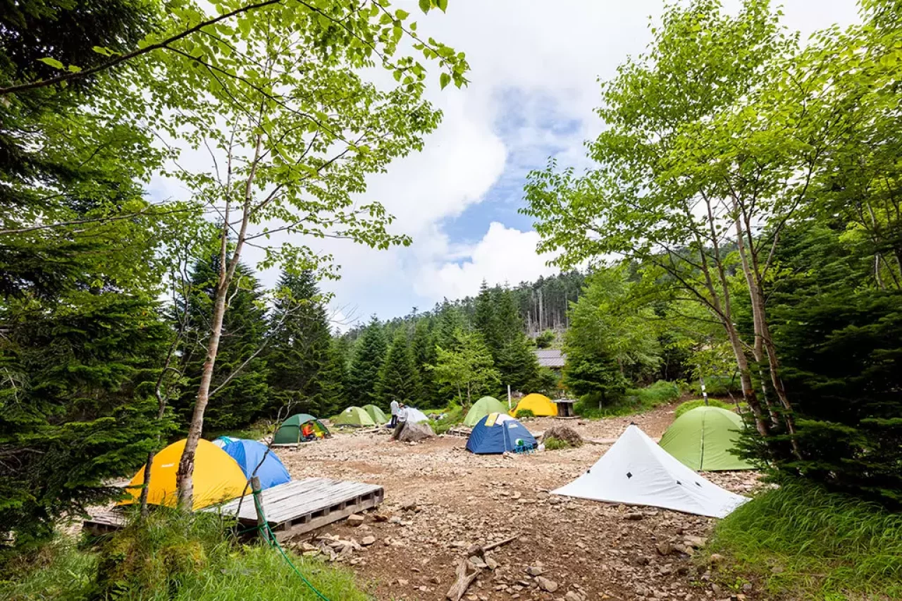 黒百合ヒュッテテント場は、唐沢鉱泉登山口から約2時間、渋の湯登山口から約2時間30分とやや距離があります。重いザックを背負って2時間以上歩ける体力が必要なため、登山経験者の利用がおすすめです。