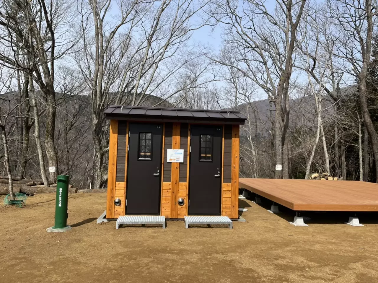 サイト内には環境に配慮されたきれいなトイレがあり(紙は持参)、令和5年に整備された水場もあります。ただし、水は煮沸消毒が必要な上、断水の可能性があるため、飲料水は持参してください。
