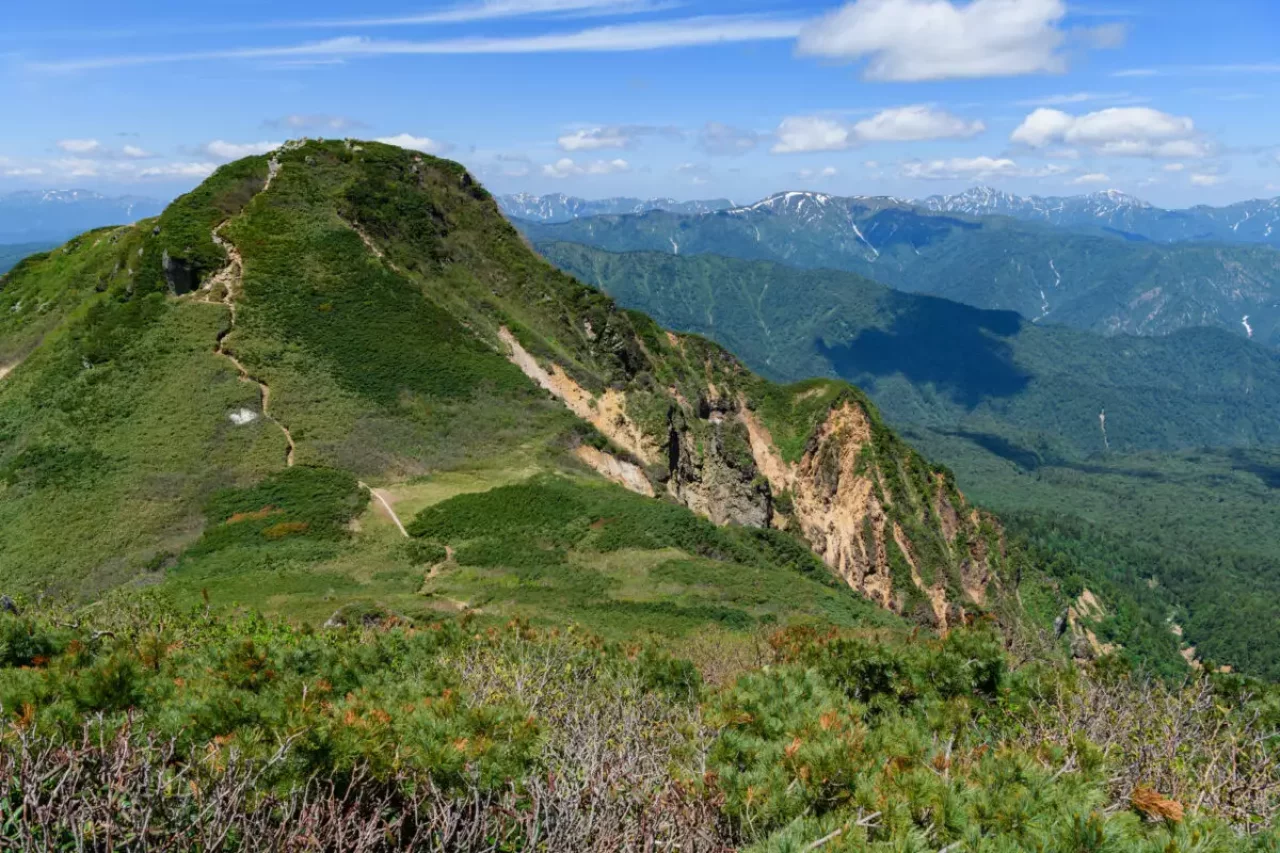 ガレ場が多く、勾配もきついため、経験者向きの山ですが、山頂からの景色は遮るものがなく、尾瀬と谷川連峰や越後三山などの素晴らしい眺望が得られます。