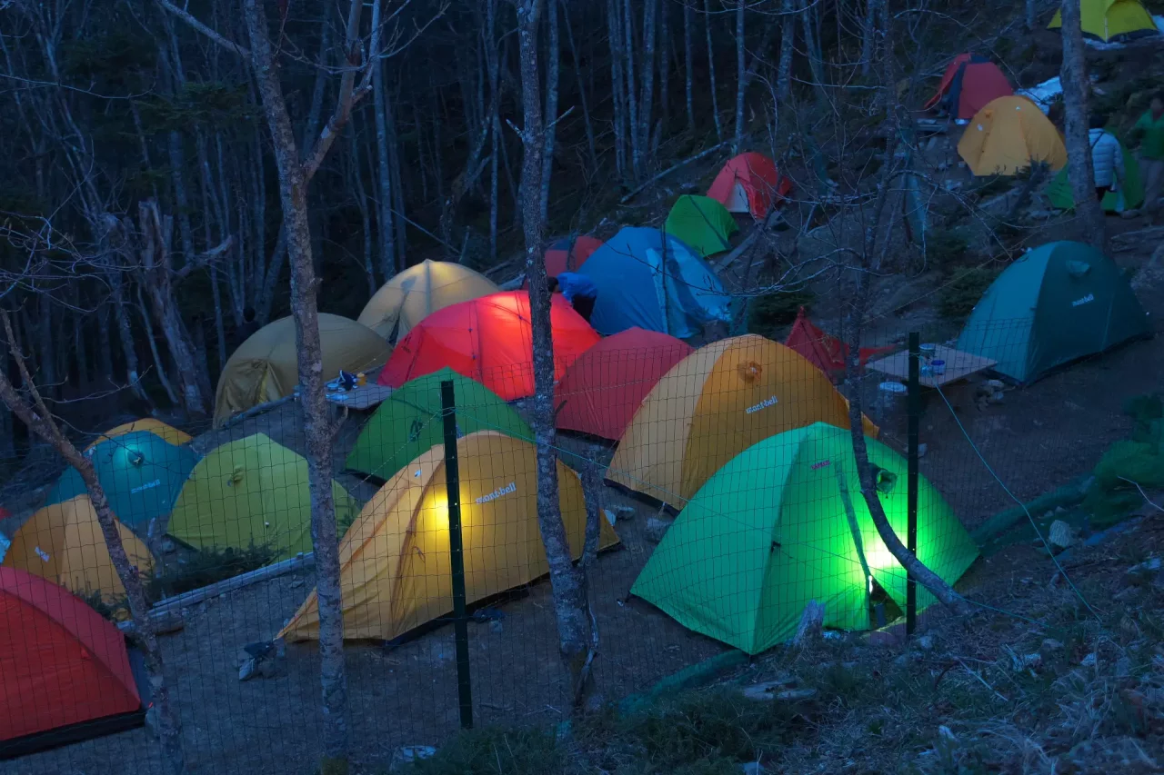 一般のキャンプサイトと違い、あくまでも登山用の野営地のため、焚き火やバーベキューなどは厳禁。登山用ストーブや卓上ガスコンロなどを使った食事を楽しんだり、森閑とした夜の自然に身を浸す感覚を味わったりすれば、家族の良い思い出作りができるでしょう。