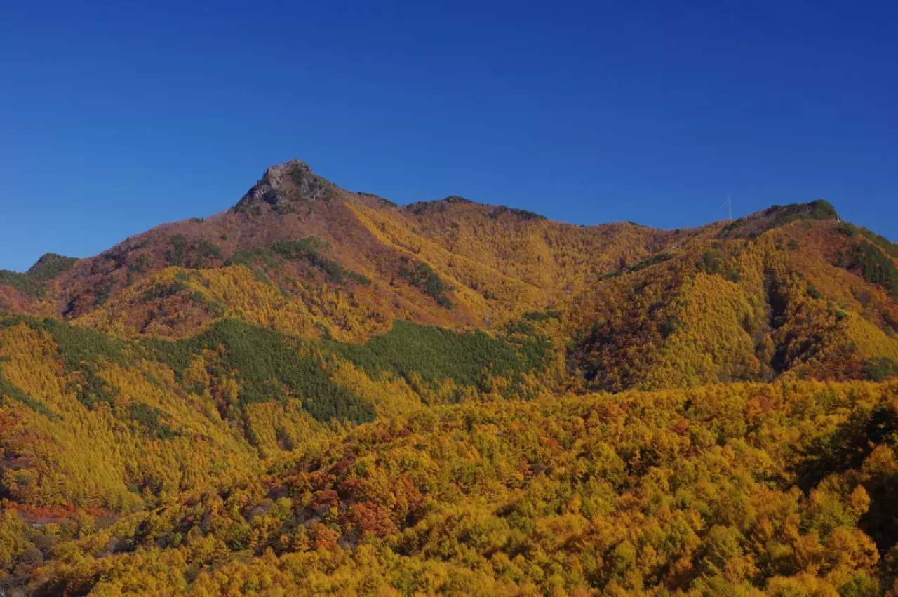 さらには、北側に長野県東信地方、西上州の山々が折り重なり、その先には浅間山や北アルプスまで眺めることができます。紅葉の時期には幾重にも折り重なる色彩豊かな山肌が、非常に美しい光景を創り出しています。