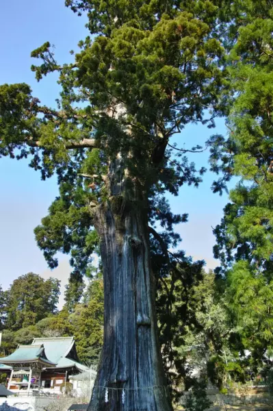 山頂直下の千光山清澄寺(せいちょうじ)は、地元鴨川で生まれた日蓮が修験に励んだ寺とされ、日蓮宗の大本山です。境内には千年杉と呼ばれる国指定天然記念物である杉の巨木があり、その大きさに圧倒されます。
