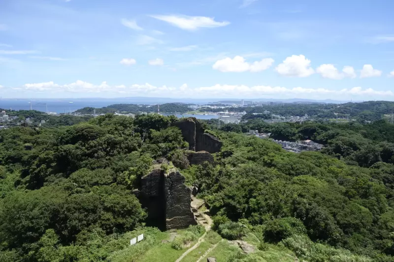 東逗子駅から標識に沿って神武寺へ。境内奥の登山道から鷹取山へ向かいます。視界が開けたら鷹取山に到着。展望台からは海と横須賀の街並みが見渡せ、天気が良ければ富士山が遠望できます。