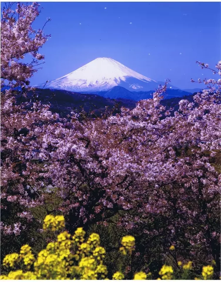 山頂からは雄大な相模湾と箱根や丹沢の山並み、迫力ある富士山の展望が得られ、冬には早咲きの菜の花との素晴らしいコラボレーションが楽しめます。
