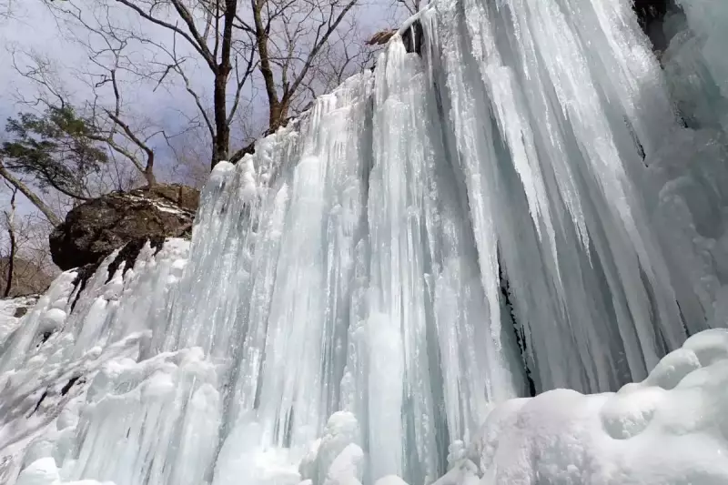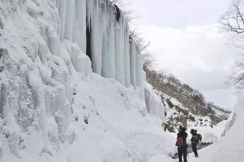 雲竜渓谷は、女峰山の中腹にある渓谷の総称です。雲竜渓谷の氷瀑の特徴は、1本の滝が凍るのではなく、ナイアガラのような幾筋もの滝が凍ることです。その姿に氷の神殿を見ているかのような錯覚を感じます。その雲竜渓谷の中でも奥地にある雲竜瀑は氷瀑の名所です。雲竜渓谷の氷瀑を楽しむためには、往復約10kmのコースを約6時間かけて歩く必要があります。当然、アイゼンなどの冬山の装備が必要です。不安な方はガイド付きの氷瀑ツアーに参加するとよいでしょう。