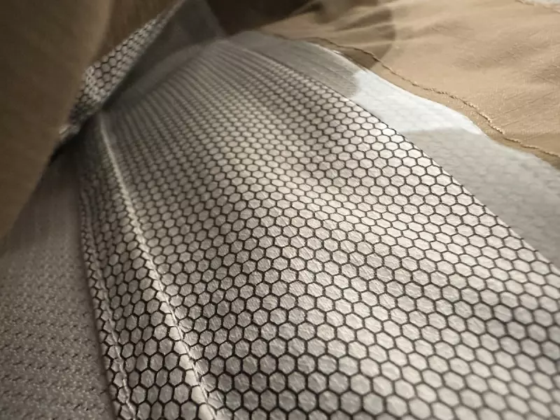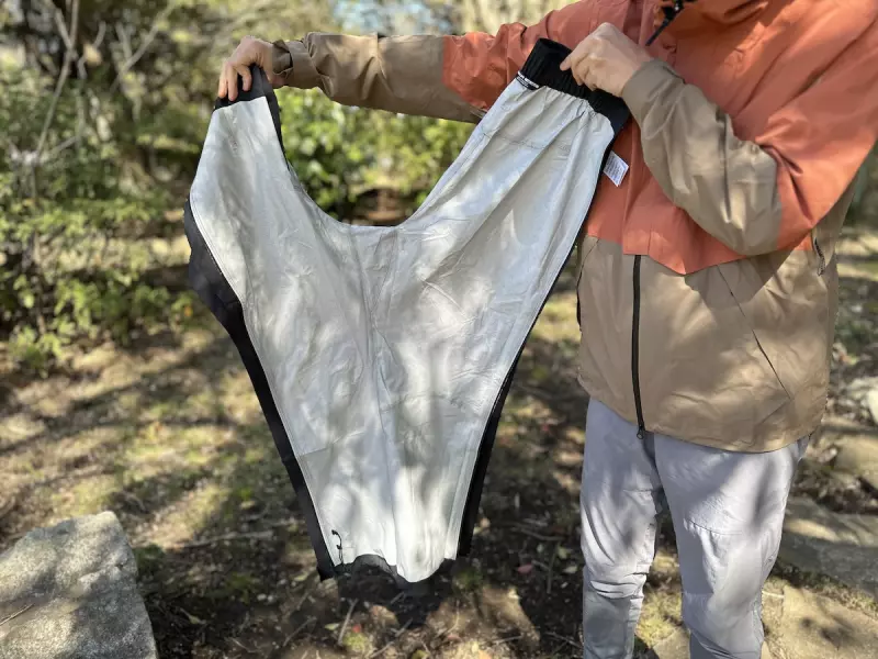 裏地を指でなぞると少し凹凸を感じることができ、これによってTシャツや短パンなどの上からレインウェアを着用しても肌に吸い付きづらくドライ感が持続します。