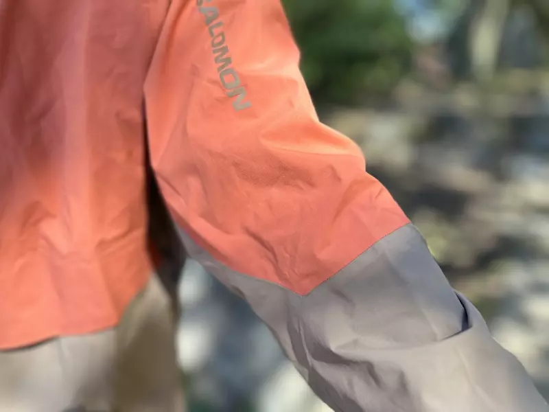 今回紹介するサロモンのレインウェア『アウターパスPRO2.5レイヤー』は、40,000g/㎡・24時間以上という、様々なメーカーのレインウェアと比較しても高い透湿性を備えています。素材はサロモンが開発した『ADV-SKINDRYbreathe』と呼ばれる2.5レイヤーで軽量かつしなやかな着心地が特徴です。