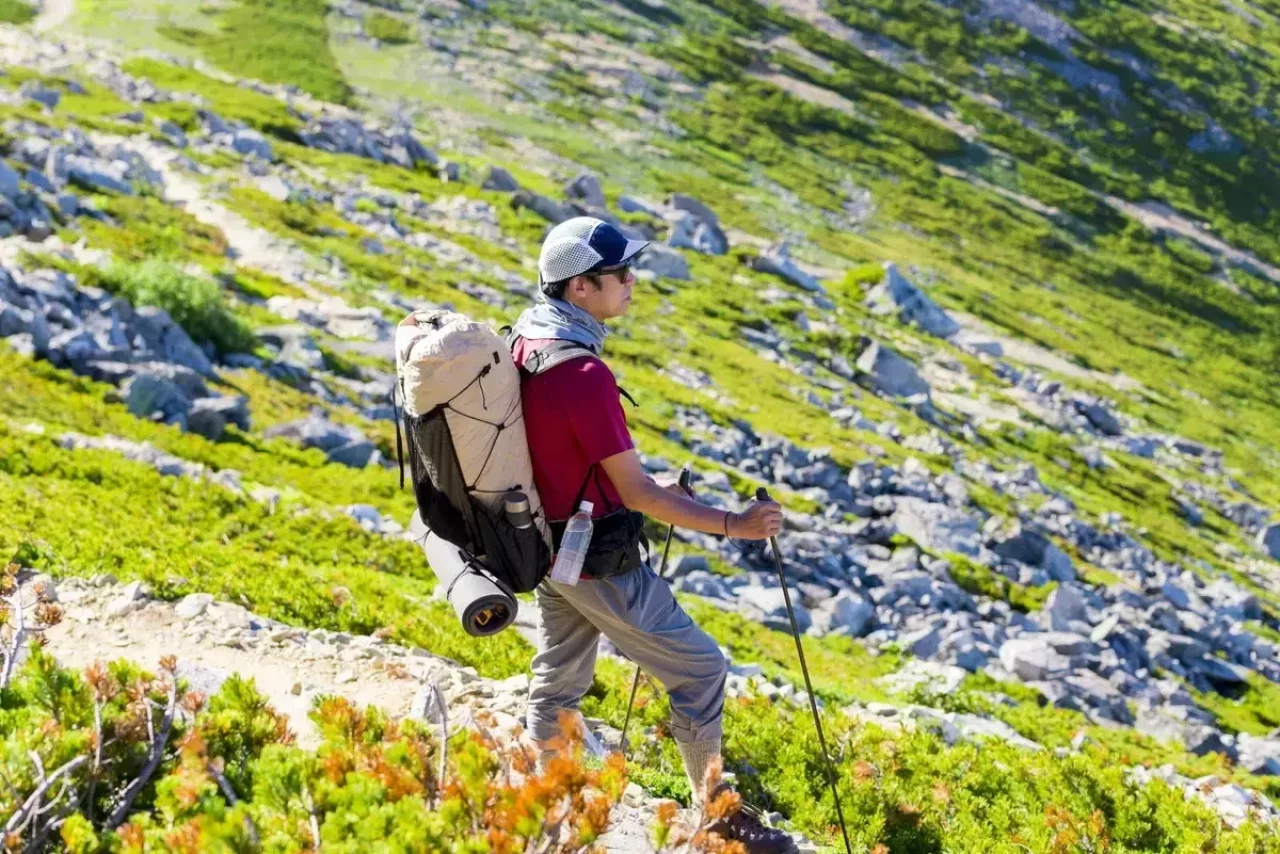 山道は整備されていない足場の不安定な場所も多く、転倒のリスクがあります。ガレ場などでは、両手でトレッキングポールを使えばバランスを取りやすくなるでしょう。