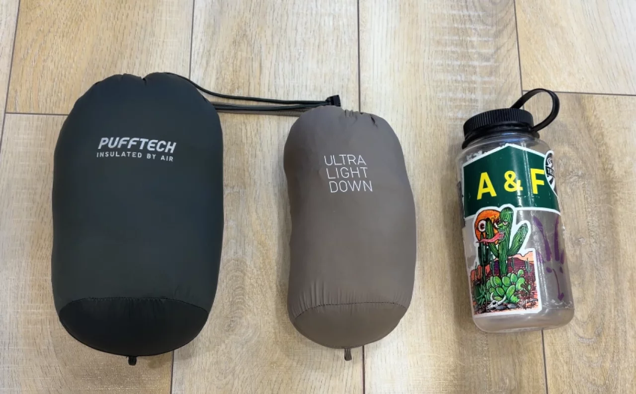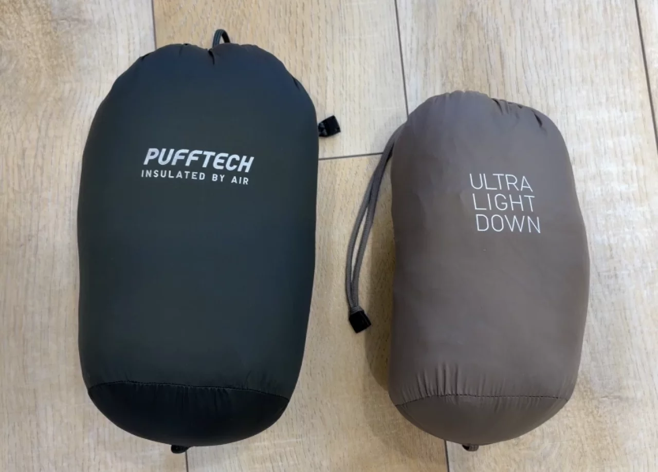 このような特徴があるのでアウトドアシーンで適していますが、重量と収納性においてはウルトラライトダウンの方がコンパクトで軽く、ここがトレードオフです。