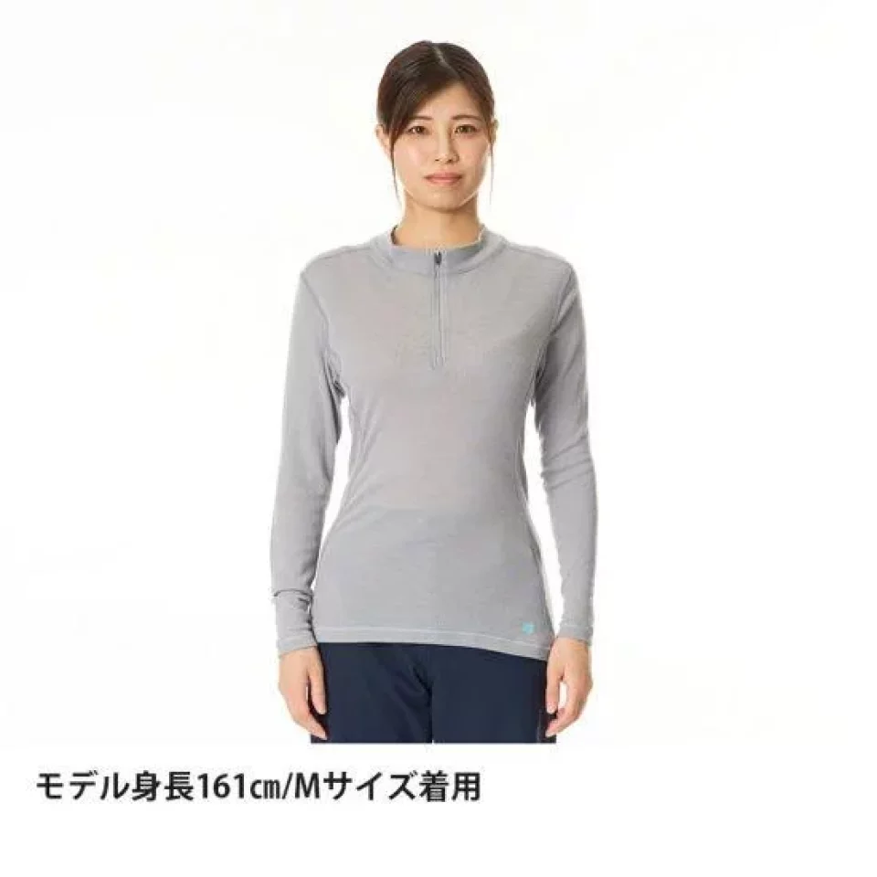 ジッパーは約33cmと長めに設計され、体温が上がったときには素早く熱を逃がすことができます。さらに、ジッパーが肌に直接当たらないよう工夫されたデザインで、アンダーウェアとして単体で着ても、下にドライ系インナーを着用してもどちらでも対応します。
