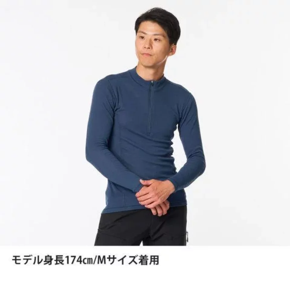 長めのジップネックはベンチレーションとして優れ、体温調節が容易。上まで閉めればネックウォーマーが要りません。メリノウールを使用した寒い時期のべースレイヤーとして人気の高い、信頼のおける一着です。