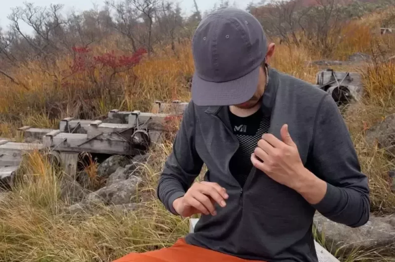 冬の登山におすすめのべースレイヤーは、ジッパーの開閉で体温調節ができるジップアップタイプのロングスリーブシャツです。行動中に暑くなってきたら、フロントジッパーを開けることで直接肌に冷たい空気を送り込め、寒くなったらジッパーを閉めて冷気を遮断、体の熱を閉じ込めます。ウェアの着脱と違い、足を止めることなくフロントジッパーの開閉だけで細かく調節できるのがメリットです。