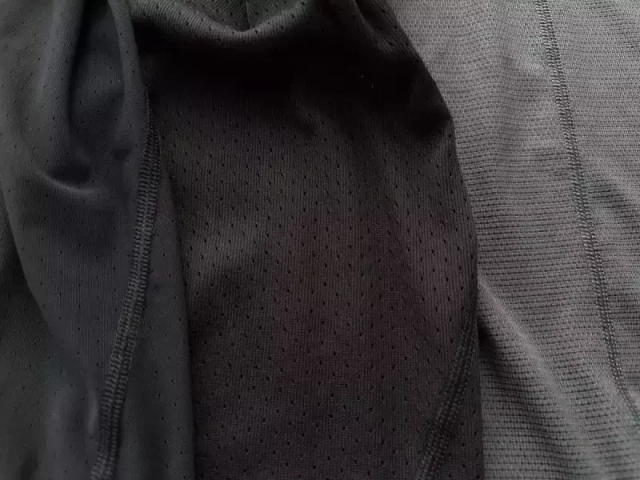 化繊素材の代表格であるポリエステルは、吸湿性は低いですが吸水性(汗を吸う力)は非常に高く、乾きが早いです。また、耐久性が高く比較的安価ですが、汗のニオイが気になります。